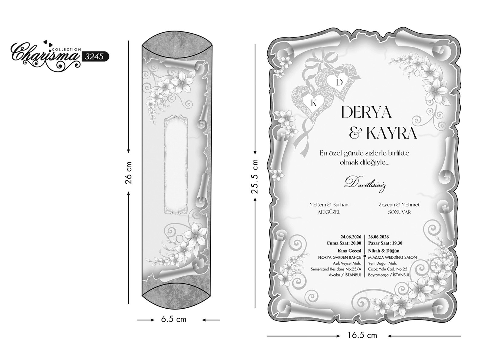 - Davetiye fiyatına kutu ve aksesuar dahildir