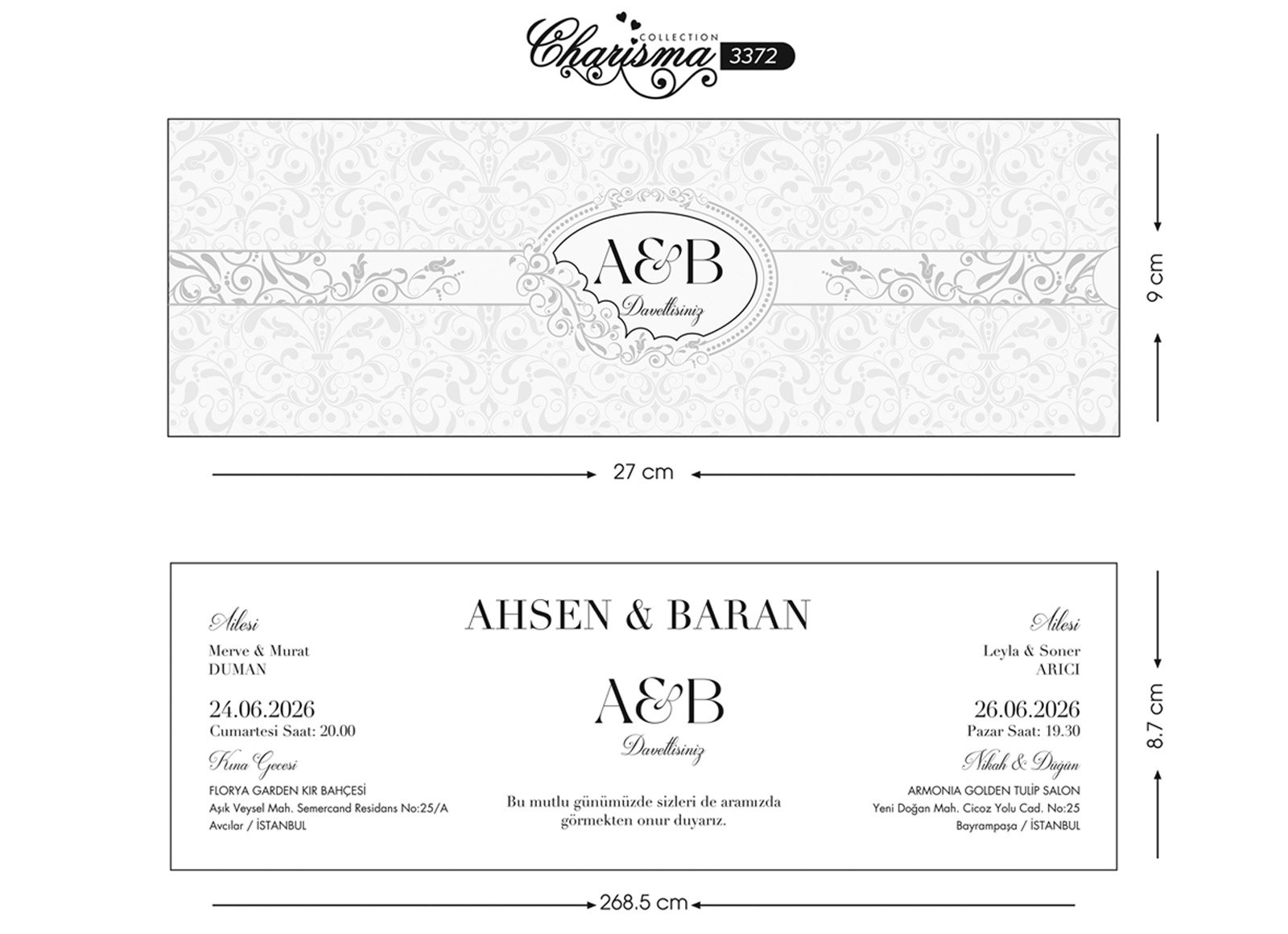 - Davetiye baskı ücreti fiyata dahil değildir.